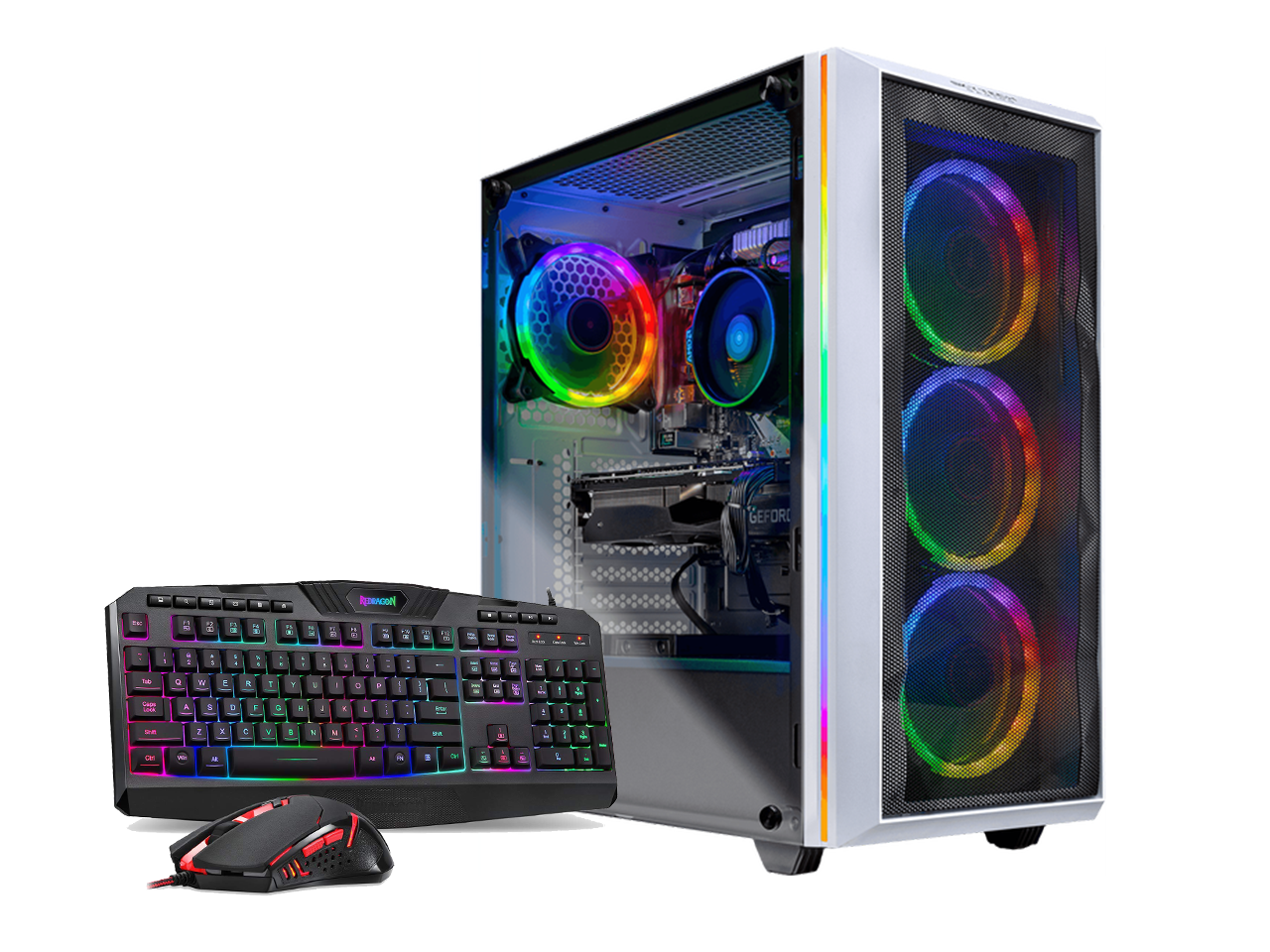 - 3 Adjustable Dual Ring RGB LED Fans + Side LED RGB Light Strip