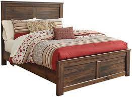 If there’s any room in your home where you want an easy-breezy vibe and relaxed sensibility, it’s the bedroom. Bathed in a rich, dark and wonderfully “weathered” finish, the Quinden queen panel bed has horizontal slat details resembling louvered panels. How beautifully it captures that rustic cottage feel, but with clean-lined refinement.